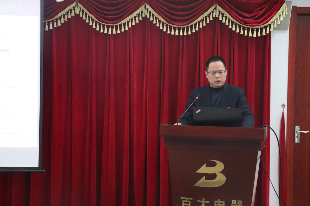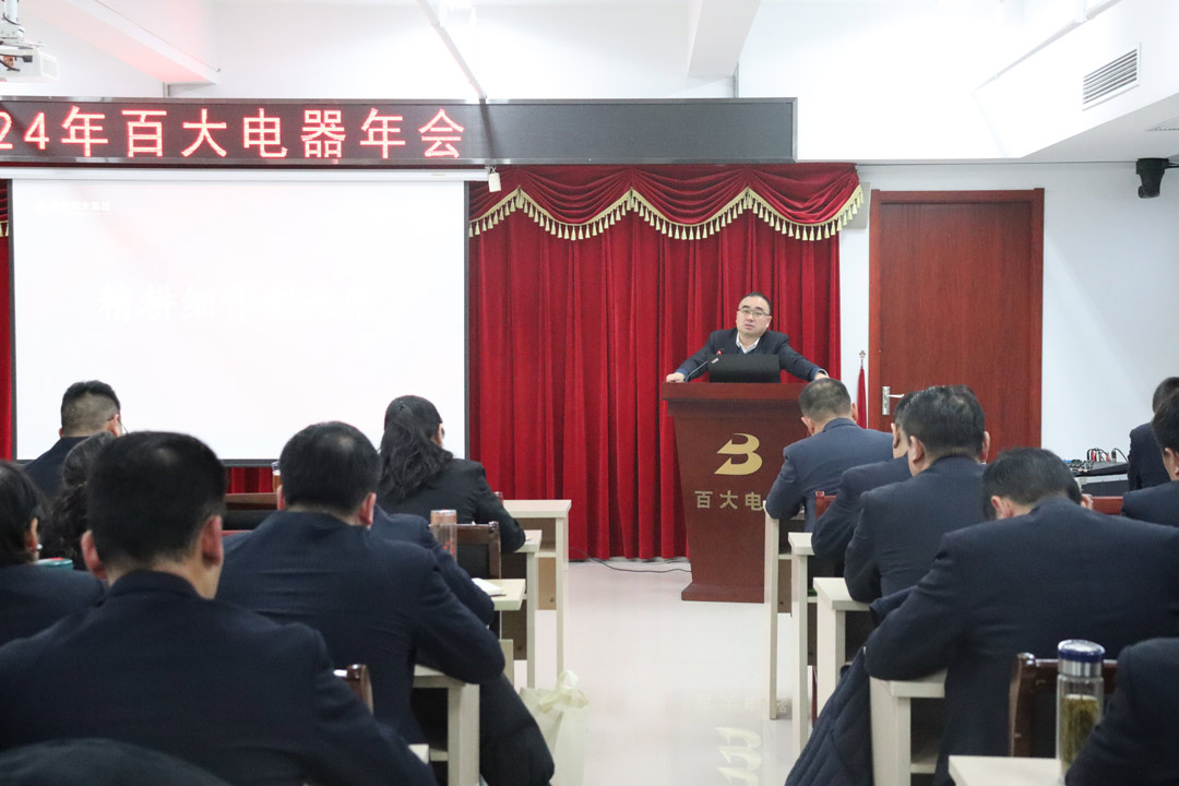 2024年1月16日,百大电器2023年度总结表彰暨2024年度目标责任书签订会议在公司总部6楼会议室召开。百大电器领导班子成员、各门店店长、总部各中心部室主要负责人参加会议。