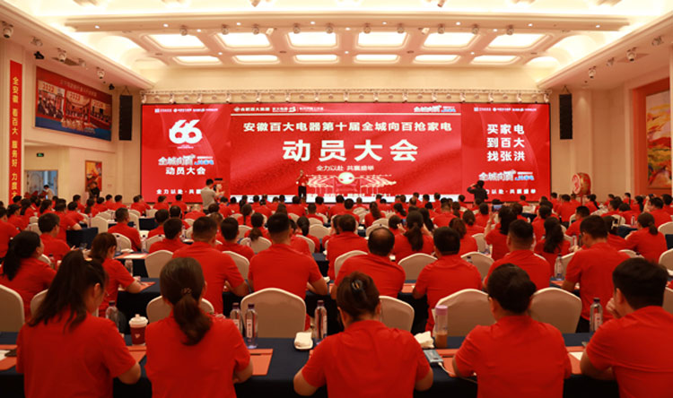 7月24日下午,恰逢百大集团66周年庆典,百大电器第十届“全城向百”抢家电誓师动员大会盛大启幕。安徽省家电盛会现场,省家电协会领导与一线品牌大佬齐聚。各品牌力挺百大“全城向百”活动,承诺推空前优惠,覆盖热门家电,辅以优质服务与售后,尽显让利惠民决心。这场盛会不仅全面回顾了“全城向百”活动过往创下的辉煌业绩,深入提炼了在家电销售、客户服务、品牌运营等领域的成功经验,更精准立足行业发展新态势与消费需求新变化,对未来家电市场的拓展方向、服务升级路径以及品牌影响力提升计划作出了清晰规划与部署,为百大电器向着更广阔的市场、更高的销售目标、更强的行业竞争力发起冲击,奏响了振奋人心的进军号角。