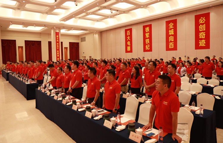 初心如磐担使命,奋楫笃行向未来!在热烈而庄重的氛围中,百大电器全体将士士气如虹,他们将以“积极自信、饱含激情、勇于担责”的铁军精神为指引,用实力续写“全城向百”的新传奇,向着更高销售目标发起强势冲击。