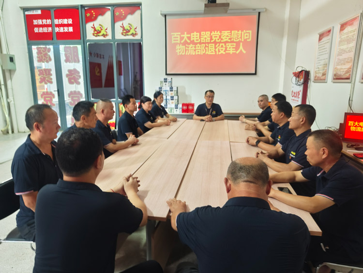 慰问组一行详细了解了他们的工作、生活和身体状况,感谢他们为百大电器物流配送所做出的贡献。当前高温天气持续,公司领导叮嘱奋战在一线户外的工作人员,一定要采取有效措施防暑降温,既要保障工作正常进行,更要确保生命安全和身体健康。大家纷纷表示会一如既往地配合门店做好售后工作,退役军人们也表示要永远坚守“退役不褪色”的初心,时刻保持军人本色,发扬优良传统,为百大电器的发展建言献策。